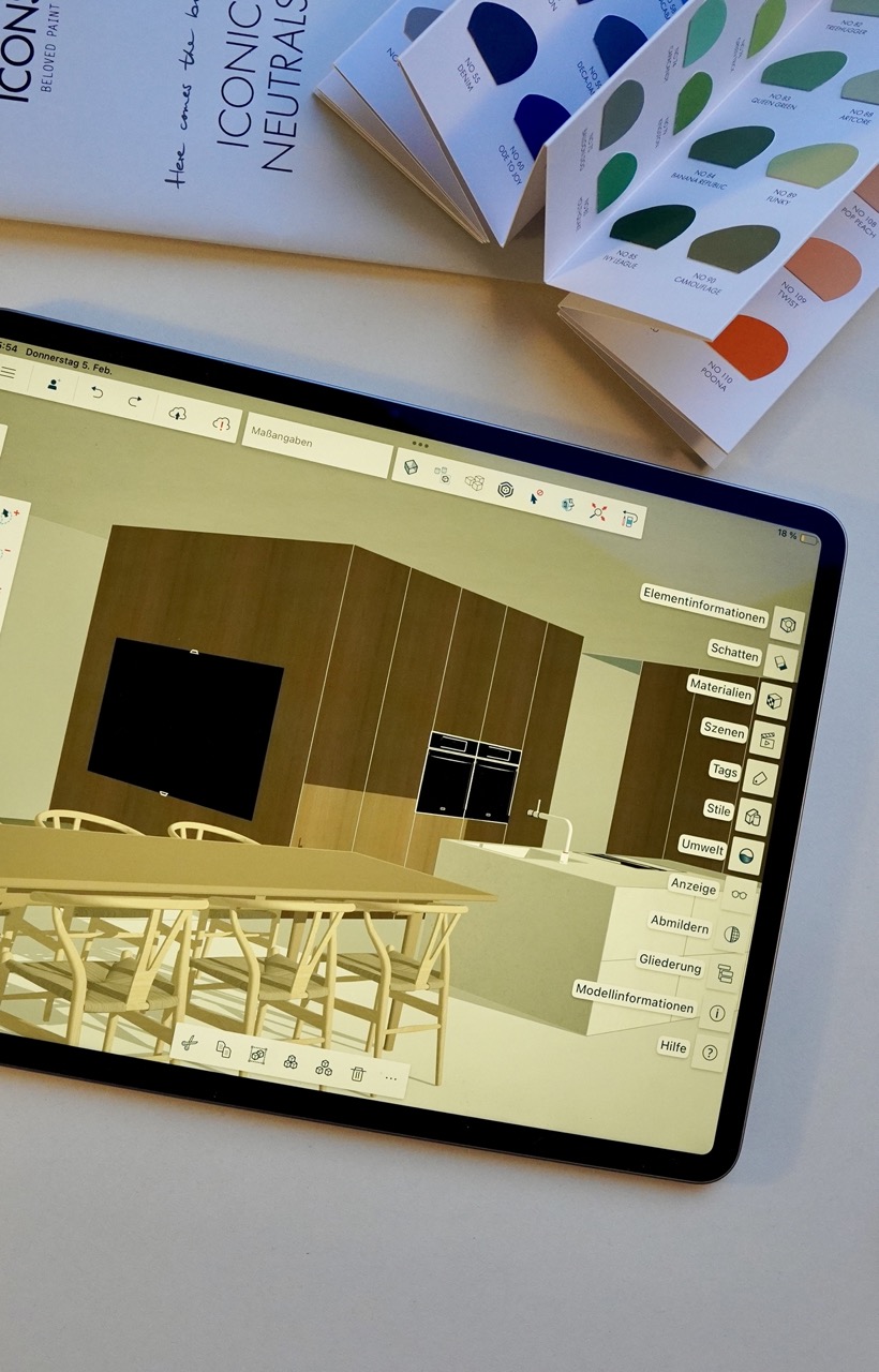 Wir unterstützen Sie bei der Auswahl passender Oberflächen, Texturen und Farbkonzepte, die zu Ihrem Raum und Ihrem Stil passen. Haptische Materialcollagen und digitale Vorschauen helfen, ein harmonisches Gesamtergebnis zu sichern.